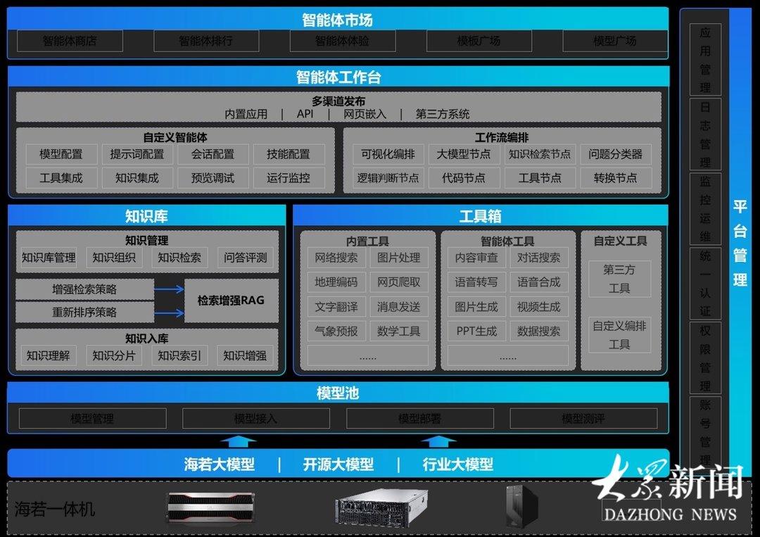 當前,智能體已成為新型應用生態(tài)的關鍵入口。海若一體機作為大模型生產(chǎn)力平臺,將助力客戶管理模型、智能體、私域知識庫等大模型資產(chǎn),推動行業(yè)智能化升級,重塑大模型落地行業(yè)格局,引領智能經(jīng)濟新時代。
